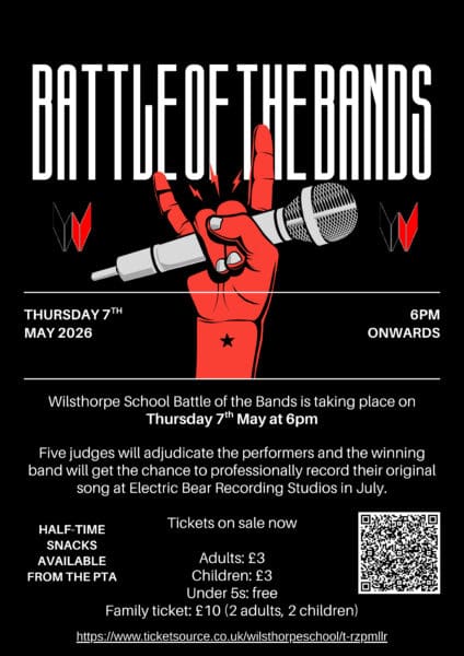 Get your tickets here: https://www.ticketsource.co.uk/wilsthorpeschool/wilsthorpe-battle-of-the-bands-2026/e-bgyvzy